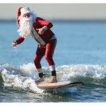 Santa llega a California en tabla de surf
