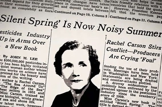 Rachel Carson, bióloga marina americana que trabajó durante años en el servicio de pesca de EE.UU., escribió en 1962 el libro “Primavera Silenciosa”, mientras luchaba contra un cáncer de mama. Su objetivo era alertar de que los pesticidas y plaguicidas químicos, como el DDT, estaban matando a los pájaros y provocando daños en el agua, el suelo y los organismos vivos.